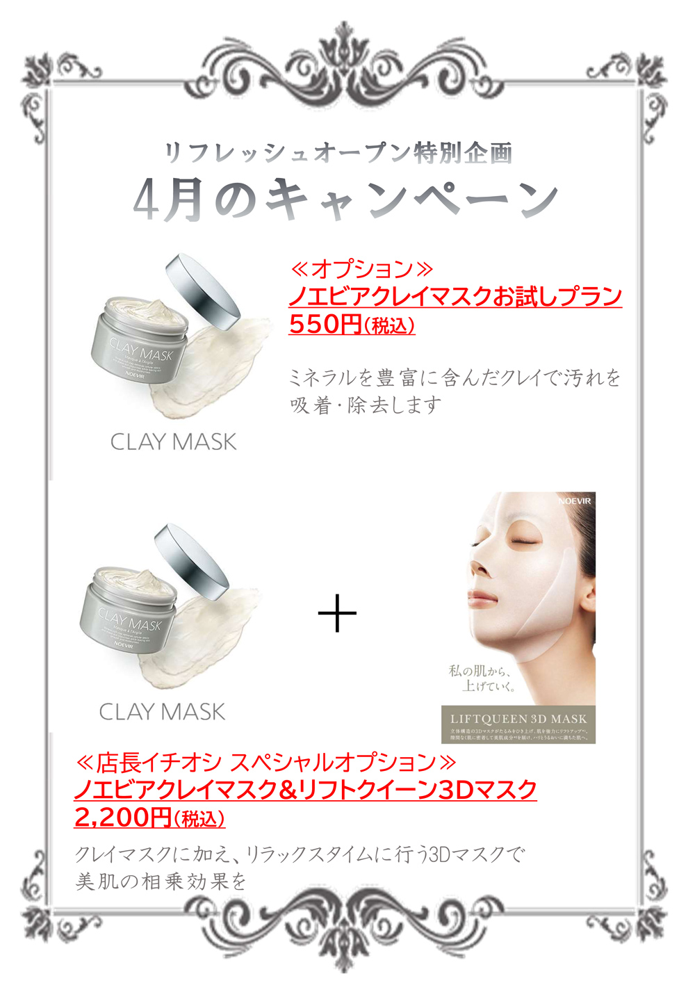 クレイマスクに加え、リラックスタイムに行う3Dマスクで美肌の相乗効果を!!